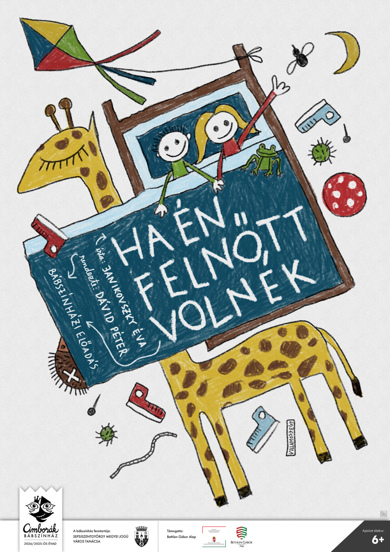 “Minden gyerek tudja, még a legkisebb is, hogy rossznak lenni sokkal mulatságosabb, mint jónak lenni.” – de ezt mintha a felnőttek elfelejtették volna, ezért folyton rászólnak a gyerekre, hogy ne legyen rossz, meg viselkedjen rendesen. És ezt olyan sokszor tudják mondani, hogy a gyereknek egy idő után elege lesz, és azon kezd el gondolkodni, hogy ő egészen másmilyen felnőtt volna. Vajon hogyan képzeli el a dacos kisgyermek önmagát felnőttként? Mivel szembesíti szüleit, nevelőit, és mi az, amire rájön “felnőtt” kalandozásai során? Janikovszky Éva főszereplőjének az útját bábbal, animációval, gyerekrajzokkal, zenével és nevetéssel kísérjük végig, hogy belelássunk, milyen egy gyermek szemszögéből a felnőttek világa, és miért is nem értik egymást nagyon gyakran. Az előadást, az alkotók szeretettel ajánlják minden 6 éven felüli nézőnek.